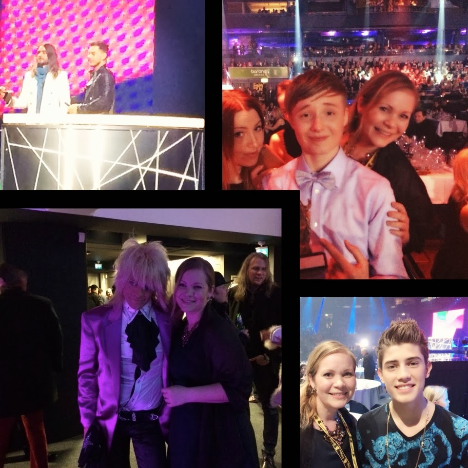 Kuvia kertyi puhelimeen satoja, valitettavasti laatu ei ole mitä parhain - mutta en malta silti olla näitä muutamia tänne laittamatta! Illasta teki extrasuperupean se seikka, että viikon takainen Oscar-voittaja, 30 Seconds to Mars -yhtyeen laulaja ja keulakuva, Artifact-dokumentin ohjaaja, polvia tutisuttava JARED LETO oli yhtenä palkintojen jakajista!! Siinä jo syytä tittelille "Elämäni Paras Ilta Ikinä" :)